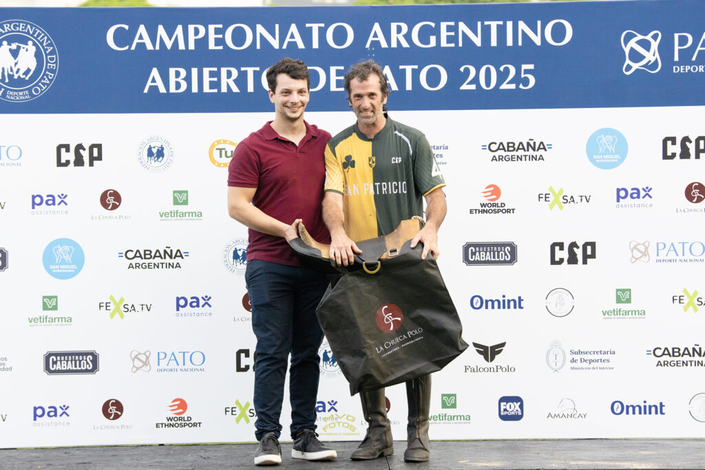 Último gran Premio y un enorme reconocimiento al MEJOR JUGADOR del Abierto Argentino de Pato, el Premio es otorgado por FALCÓN POLO y es entregado al Sr. Federico Ferrari.