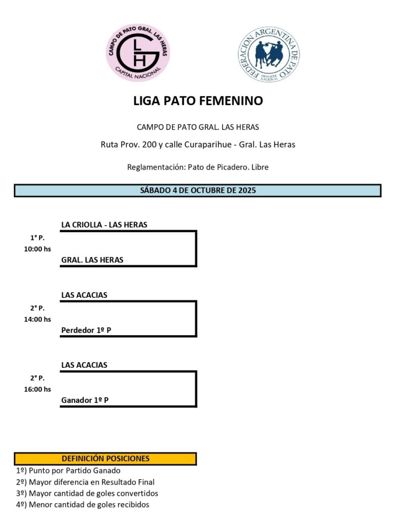ATENCIÓN: SÁBADO 4 de octubre desde las 10 hs HAY PATO FEMENINO EN LAS HERAS.